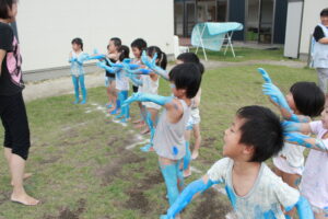 今日はつき組がボディペインティングを行いました。