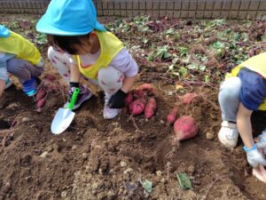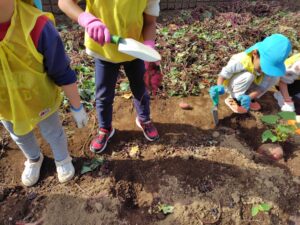 2025年10月30日食育園ブログ 芋ほり 今日は春に植えたさつまいもを収穫しました! 今年はさつまいもが不作…というニュースを聞いていたので心配でしたが 大きなさつまいもを沢山収穫出来ました☆ 採れたお芋を使って、クッキングも行います。楽しみですね! 前の記事へ一覧へ戻る