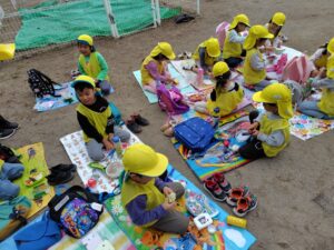 遊具で遊んだ後は楽しみにしていたお弁当タイム。
