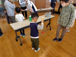 けん玉、お手玉、こま、紙飛行機…上手く出来るコツを教えていただきながら挑戦。