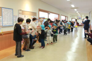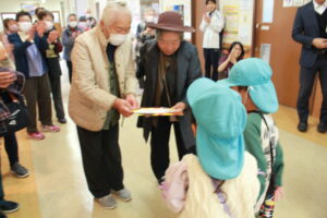 紙飛行機のお土産を頂戴し、たいよう組からはお礼のメッセージカードをお渡ししました。