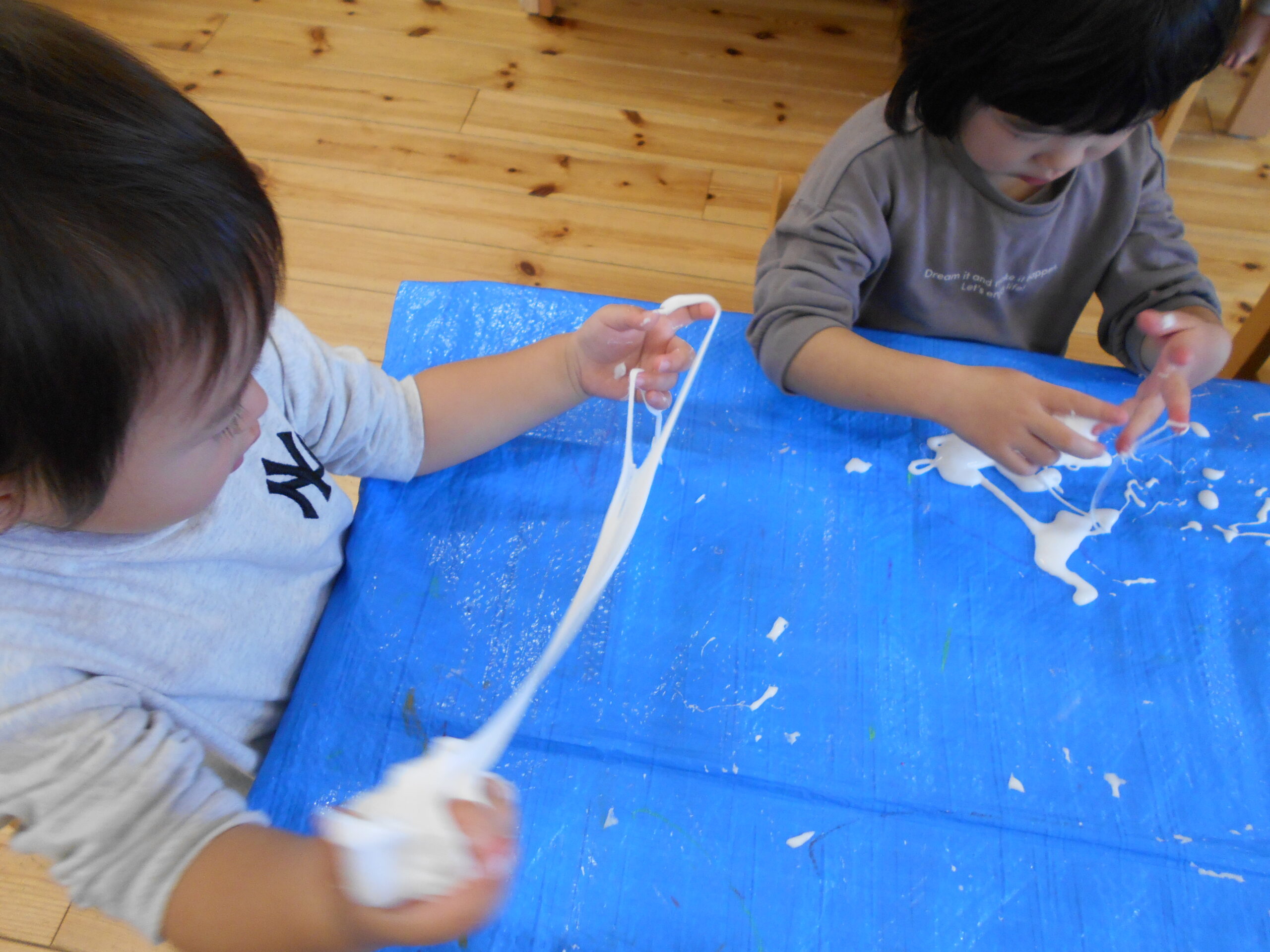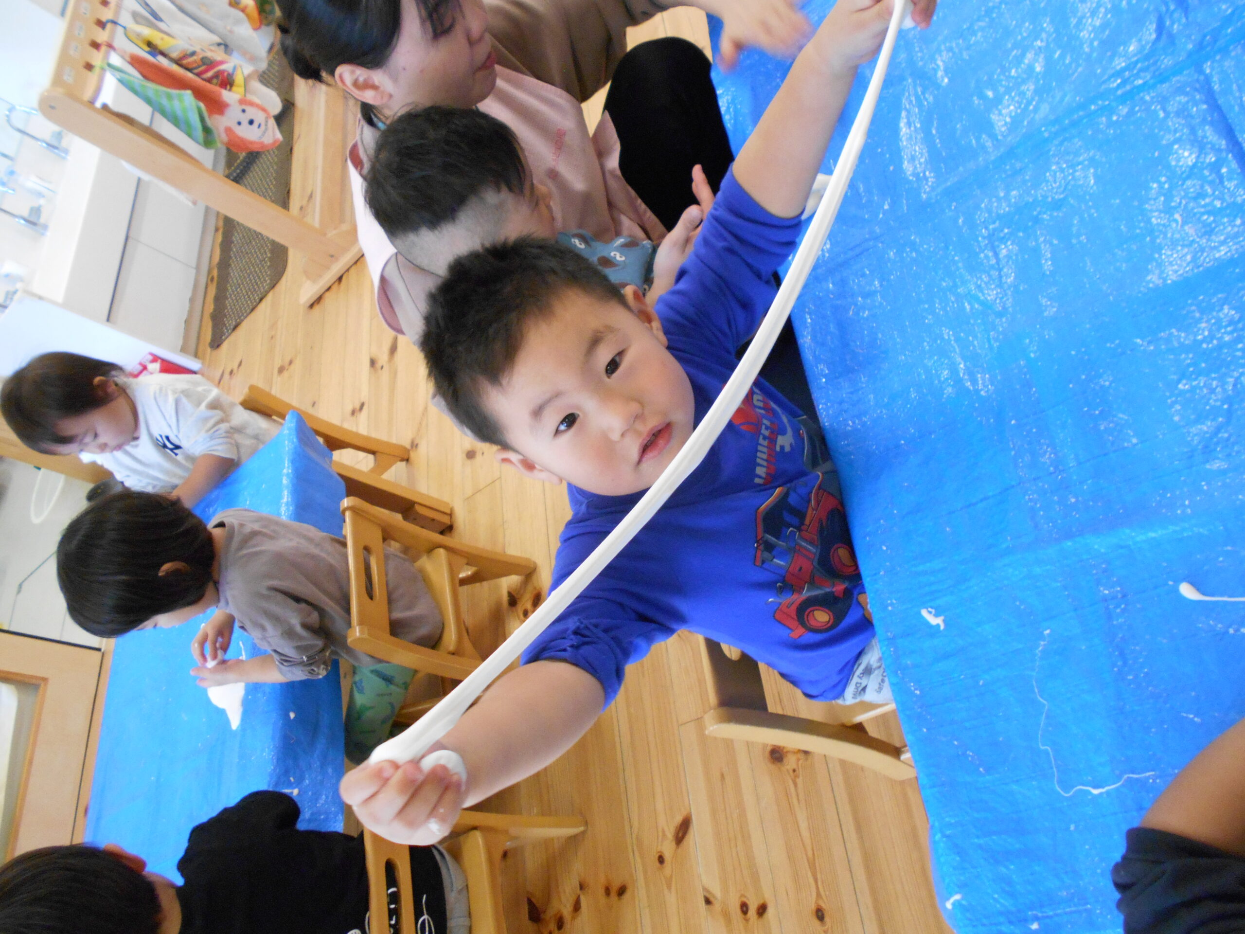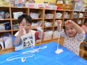2025年11月7日園ブログ 感触あそび(はな) はな組では、粘土から作った『スライム』で遊びました。 こねたり、のばしたり、お化けを作ったり、お友達のスライムとつなげて楽しんだり。 不思議な感触を堪能していました♪ 前の記事へ一覧へ戻る 次の記事へ