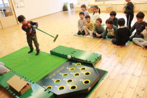 「スカットボール」のセットをお借りし、皆で楽しんでいます。