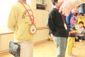 2026年1月23日園ブログイベント・行事 コマ回し大会 今日は幼児クラスのコマ回し大会がありました。 各クラス2グループに分かれ、それぞれの勝者で決勝戦を行います。 にじ組 つき組 たいよう組 各クラスの優勝者には金メダルが。 頑張った皆全員にもメダルが授与されました。 負けて悔しい想いもした子もいたけれど またひとつの経験を通して、大きくなった子ども達です。 前の記事へ一覧へ戻る