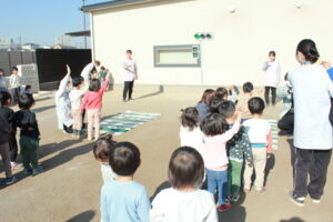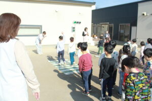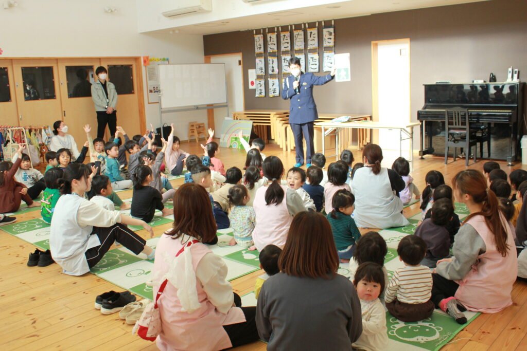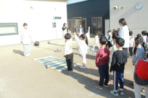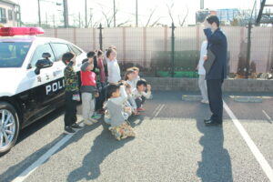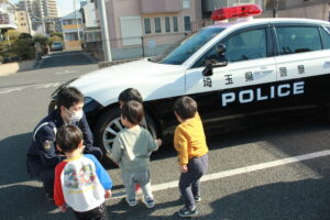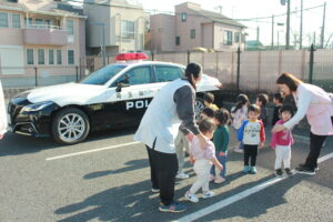 2026年2月6日園ブログ 交通安全教室 草加市警と草加市交通安全課の皆様による、交通安全教室を実施しました。 信号の渡り方や交通ルールを教わり 実際に横断歩道を渡る練習をしました。 お巡りさんが乗って見えたパトカーを前に記念写真も撮りました。 たいよう組は、憧れのお巡りさんから敬礼のやり方を教えていただきました☆ 前の記事へ一覧へ戻る 次の記事へ