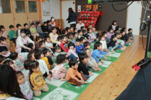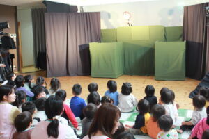 2026年3月4日園ブログ 観劇会 今日は劇団ピコットさんの人形劇を鑑賞しました。 題目はショート劇「だれのおさかな?」と「オオカミと七ひきの子ヤギ」 初めから皆、人形の動きに釘付け! 笑顔、笑顔の時間でした。 前の記事へ一覧へ戻る